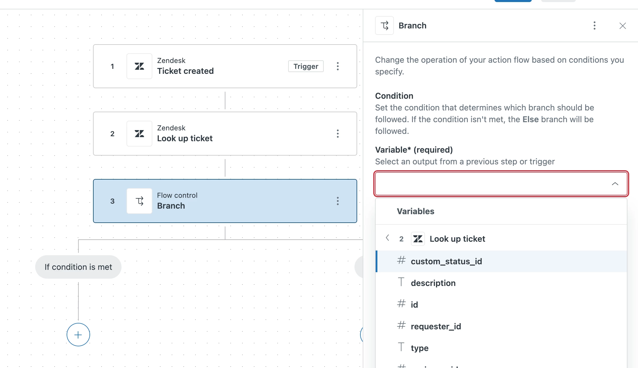 I'd be great if we can use the custom status for tickets and not only the status. That should apply for the steps related with tickets and branching, and also as variable for the next steps.
