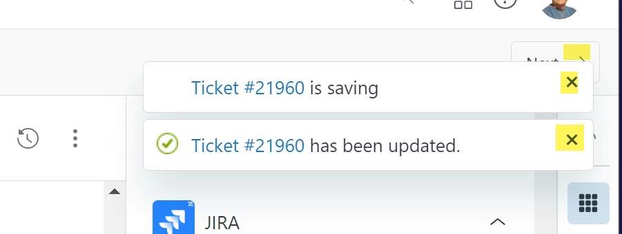 These type of pop up notifications happen every time the status of a ticket is updated and have to be cleared out manually. It is distracting for agents and causes excessive, unnecessary clicks. It would be great to have an option to disable these pop ups from occurring in the first place. Thank you!