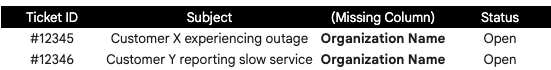 The Limitation: Agents cannot immediately identify which client (Organization) is affected by a specific incident without clicking into each individual ticket.