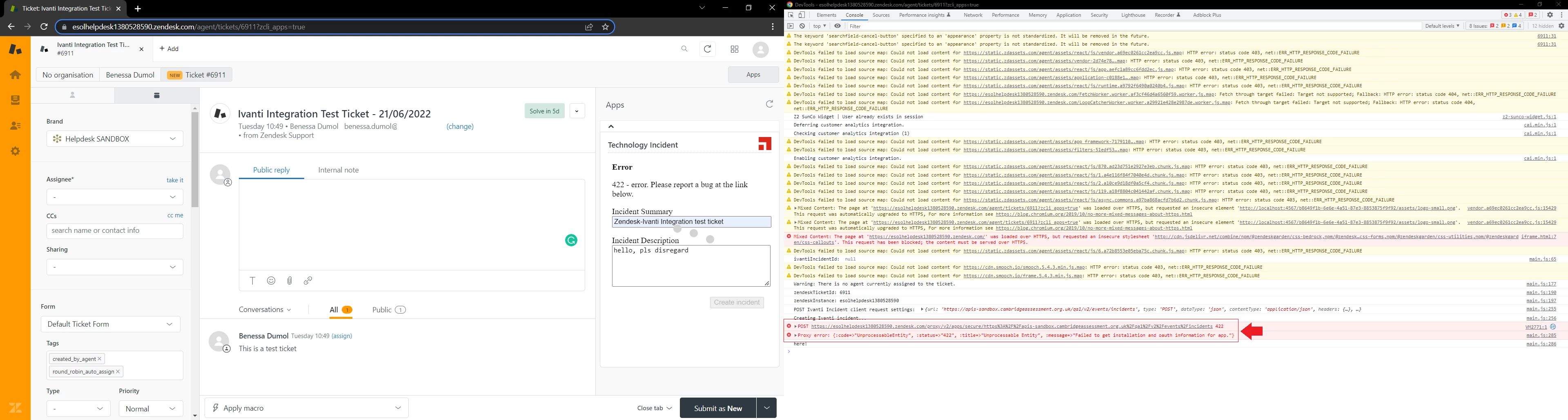 Hello, we have an app that is connecting to Ivanti to create an Incident. The app is not working when I tried running it locally but is working fine on live. I am using the command zcli apps:server to run the app locally. We are also using secure settings on the app.