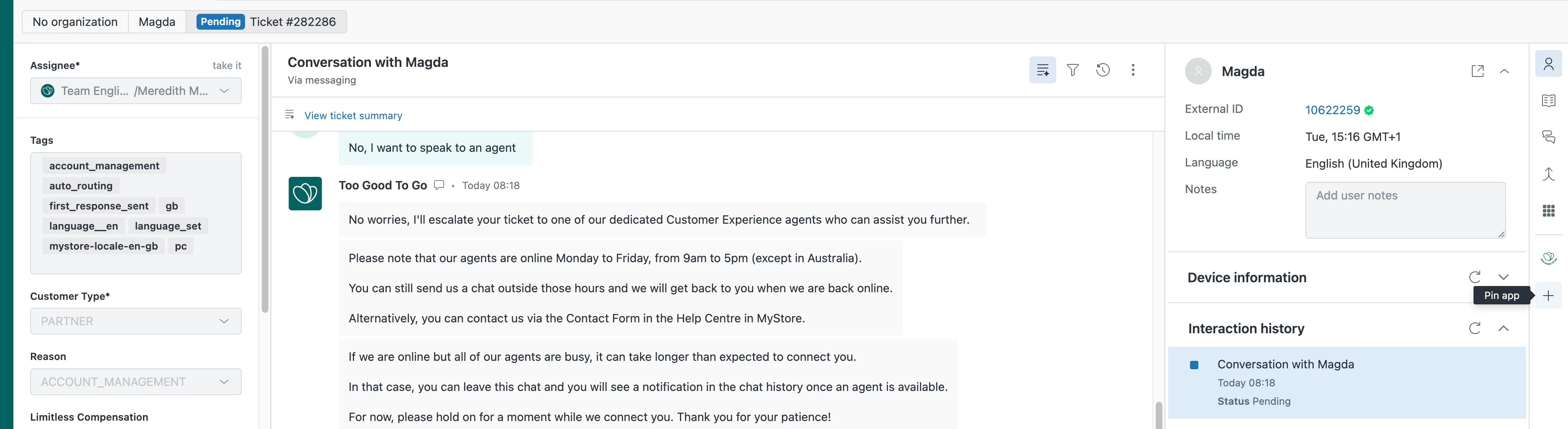 Tickets created via the Messaging chat widget are missing crucial contextual information like user email address