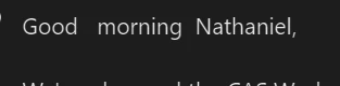 I'm trying to add a greeting in a macro that will say good morning or good afternoon depending on the time of day. So it would do it automatically. Thank you for your assistance.